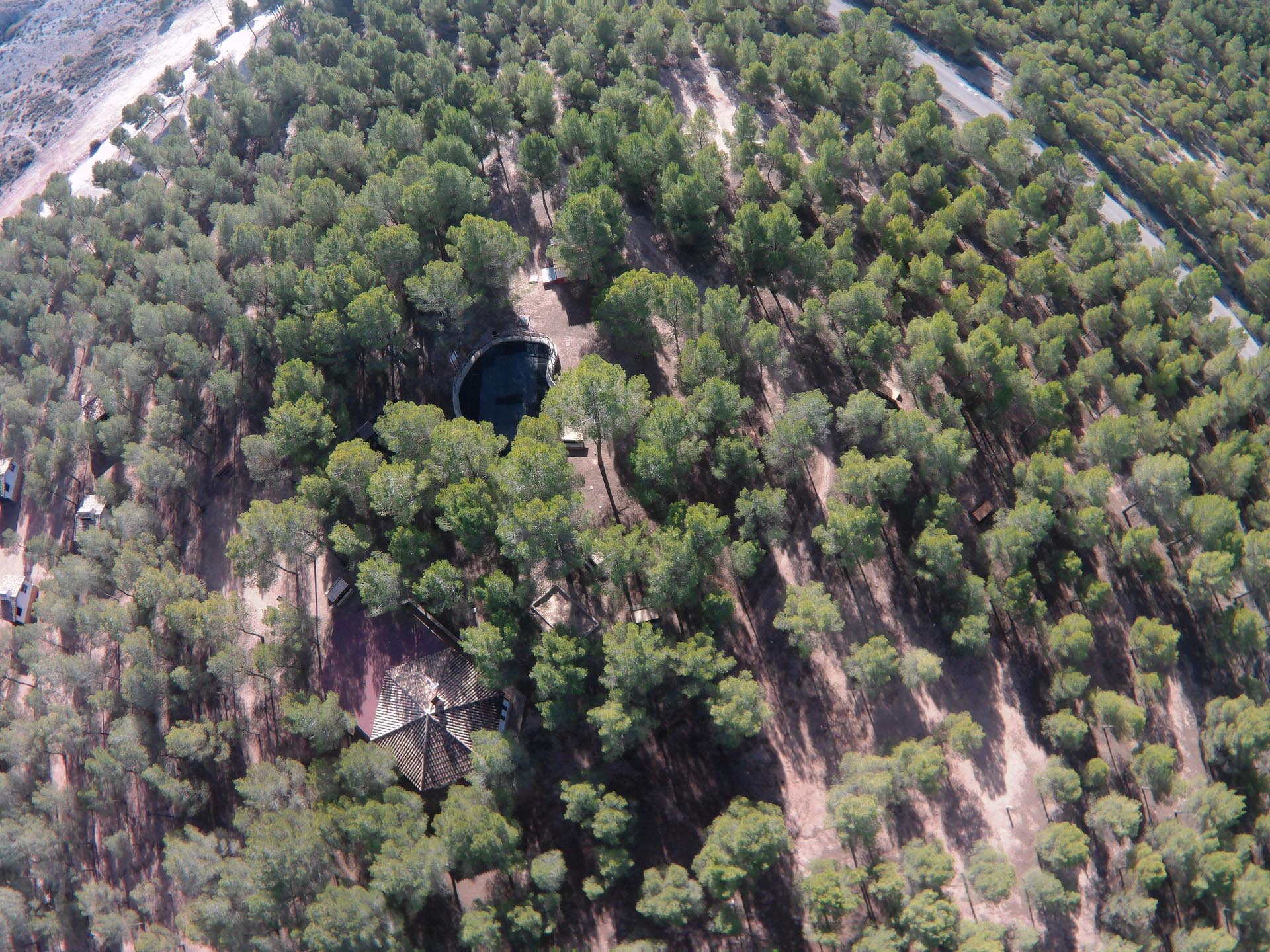 El área recreativa y zona de acampada al aire libre está dotada con el equipamiento necesario para estas instalaciones: barbacoas, Kiosco-bar, mesas, fuentes y aseos. El edificio de los aseos de forma hexagonal, mantiene la tipología de las construcciones de la cercana colonia de Santa Eulalia. La capacidad de acogida de la zona de acampada es de 120 personas.